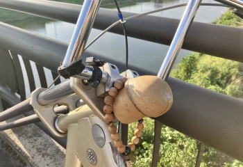 散歩の途中で珍しい自転車にお乗りの方とお話させて頂きました(;^ω^) 10日ほど前にもすれ違ったんですが、ついやり過ごしてました。次に出会ったら必ず!と思ってましたので思い切ってお声掛けしました。 年の頃は私より三つ四つ上くらいのオジサン、いや、お爺さんかな?(笑)めっちゃファンキーな爺さまで、両頬には薔薇の花とかハートなんかのタトゥーがたくさん入ってるし、両腕には鯉とか何やらのタトゥー。耳は広末涼子の元旦那ばりにびろぉ〜んとデカイ穴開いてるし、ピアスだらけやし、指は親指除いて全部指輪はまってるし(笑)ハンパないファンキーな御仁(;^_^A まぁ、普通の人は声掛けんでしょうなー(≧▽≦) でも、酔狂な人間には興味をそそられるんですよねー「こんにちわ!カッコよろしいなー!」この一言で済みます(^▽^) ニタっとして停まってくれました。なんでも10年前に中華製の自転車を買って改造したんだそうです。以前はもっとフロントが長かったそうですが、警察に注意されて20cmくらい切ったと言います(それでも違反・笑) 話し言葉は関東訛り(関東人の言葉を関西人が訛りと言っていいのかどうか・笑)なんですが、住まいを聞いたらすぐ近くの団地だという。写真を撮っていいかと尋ねたら快く応じて下さいました。私としましてはファンキーなオーナー共々撮りたかったのですが、何だか顔出しはいけないような気がして(;^_^A 自転車のみにしました。次にお会い出来た際には是非ともファンキーオーナーもご紹介したいと思っていますので、お楽しみに(≧▽≦) |