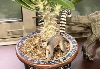 先日のニフレルへ行った時のお土産がコレ(;^ω^) 行った記念に何か買ったりするんですけど、本来はニャンコものだったりするんですが、、、 ニャンコものと言えばホワイトタイガーになるのが普通なんでしょうが、どうにもそそられない(;^_^A で、何にする?と言われても、、、長女はハコフグがお勧めだけど、ハコフグ何処に飾るの? 黄色で可愛いんですけど、、、色々迷った末にワォキツネザルにしました。庵にはジャングルステージがあるので(笑)先日買ったパキポディウム、、、未だ覚えられず(*≧д)ノシ彡☆の処に飾ってみました。 |