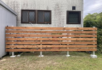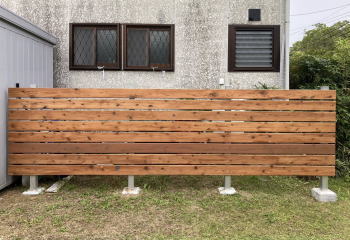 7月に建てた目隠しフェンス。板の隙間を今までのフェンスと同じにして建てたら、向こうが見え過ぎて、これは目隠しという機能を果たしてないなと、、、工事後から気になっておりました。見るたびにその失敗が気に掛かるので、この度上下を残して間の板を外して1枚増やす事にしました(;^_^A で、隙間が小さくなって見えにくくはなったのですが、保護塗料の残りが少なくなって濃くなっていたのに気付かず塗ってしまいました_| ̄|〇 il||これでまた見るたびその失敗が気に掛かるのです(笑) |