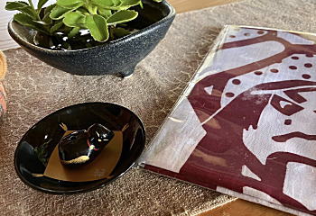 絵に書いたような鳴門巻みたいのは見られませんでしたが、海流がそこだけぶつかり合う波の凄まじさはよく分かりました。大きな船ながら何かに掴まっていないと飛ばされそうになるくらい凄く揺れて吐きそうでした(;^_^A その後、向いにある淡路人形浄瑠璃を観劇しました。面白いんですが、薄暗いのと人形に大きな動きが無いので、つい瞼が...ハッ(;゚Д゚)として隣をみたらヨメも舟漕いでました(笑)恒例の旅みやげニャンコですが、何処にも無くて半ば諦めておりましたら、なんと(;゚Д゚) 浄瑠璃劇場でお香挿しの福ねこをゲット!(≧▽≦) それも展示品が残りのひとつだからと言うから尚更ラッキー!福を貰った気分です。で、気分を良くして浄瑠璃の手ぬぐいも買いました。また、額買って庵に飾ります! |