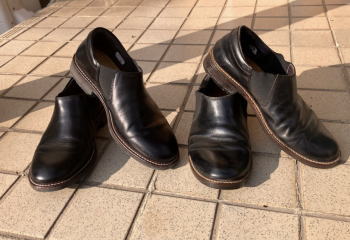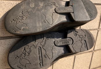 | 先月末に修理に出したNAOTの愛靴が戻って参りました。あんなにべろんべろんに口が開いていた靴底がウソのようにしっかりと貝のように閉じております(*≧д)ノシ彡☆ 新人君と比べるとサスガに見る影はありませんが、その分使い古した味はあります。履き比べてみると古靴はやはりかなり伸びているというか緩いですね。新人君はサポートがきつくてまだ踝が少し痛い感じです(>_<) 靴の裏はご覧の通りの減り具合。踵は今まで二回やり替えてます。クルマと言い靴と言い、どんだけ使い倒すんやと笑われそうですが、これが私の生きる道(貧乏性)なんですかねー 10年間この靴で何万キロ歩いたんだろ?これからも宜しく( ^ω^)ノ) |