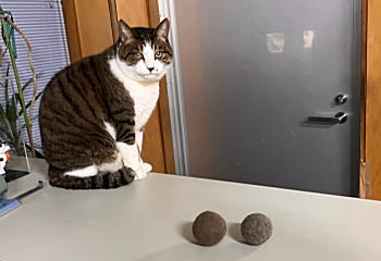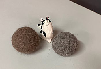 ブラッシングして欲しい時にカウンターに自ら乗ってアピールします。その抜け毛を捨てるのも何なんで、クルクルと丸めておりました。 それで最近発見したのが、同じネコでも夏毛と冬毛では全く違うと言う事です(;゚Д゚) 画像でもお分かりのように左側が冬毛、右側が夏毛で色が違います。まるでキジトラとサバトラみたいです(笑) もうひとつ違うのは手触りで夏毛は割と固くあっさりとした感じですが、冬毛は柔らかくしなやかで、暖かさが違います。ネコを30年近く飼って来ましたが、今更ながらの発見です(;^_^A |
