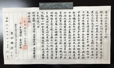 | 昨年は足が不自由だったので二年振りの写経となりました。しかし早いもので今回で10回目!お昼から長男家族と宴会です。 | |