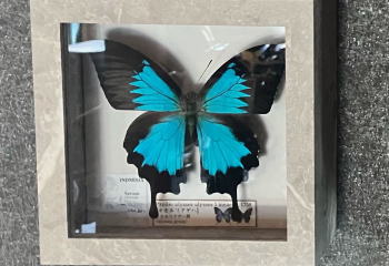 | 先月「蝶」という名の喫茶店があったというお話をしましたが。その昔、真っ青な蝶々の額を飾ってたのを幼かった長男のヤツが壊してしまって、いつかまたそういうのが欲しいなぁ、、なんて思ってたワケです。そんなところオークションでこの蝶の額を見て1,700円とまずまずだったので落札しました。 落札してから気付いたんですが、出品者の住所が北海道(;゚Д゚) あーこれは、、、で、送料が着払い(≧д≦) 案の定、購入金額と変わらぬことになってしまいました。ヨメには商品込みの着払いのような素振りで通してます(;^_^A |